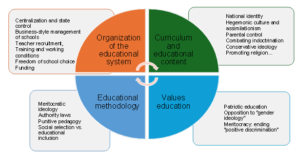 All these authoritarian groups have managed to shape a narrative aimed at defining and establishing educational policies that govern formal education systems, but also at promoting a broader public pedagogy that reconfigures common sense and the collective vision of societies, a set of strategies and approaches that we refer to as educational neofascism.