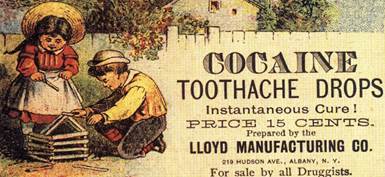 Gotas de cocaína para el dolor de muelas, anuncio de 1885.