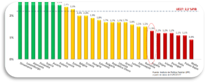 Según el Informe de Evolución de la Familia del año 2021, perteneciente al Instituto de Política Familiar -en adelante, IPF-, España se encuentra entre uno de los países con menos ayudas destinadas a las familias, en concreto, con un 1,3% del Producto Interior Bruto (PIB); en este contexto, se destaca la media de la Unión Europea -un 2,2% del PIB- (Instituto de Política Familiar, 2021)… no nos sorprenden las grandes dificultades que emprenden las familias españolas ante la falta de recursos económicos y sociales, ante los casi “inexistentes” gastos sociales del Estado.