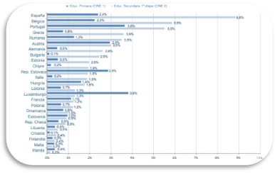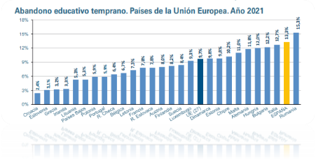 Gráfico 1.2. El abandono escolar de los países de la Unión Europea.