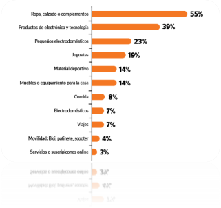 El gasto medio español en el Black Friday de 2022 fue de 232 € (Organización de Consumidores y Usuarios, 2022), ¿cuáles son los artículos más demandados por la población española?