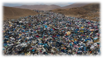 La gran fabricación de prendas “low-cost” nos hace llegar hasta el desierto de Atacama ubicado en Chile, como se observa en la fotografía, un vertedero mundial de la ropa, reflejo de la sociedad de la inmediatez, consumismo y explotación laboral a cualquier coste.