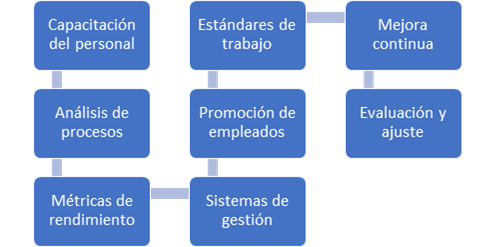 · Integración de principios Lean, como la mejora continua y el enfoque en el valor agregado, en los programas de capacitación y desarrollo de empleados.