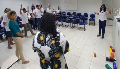 O Boliche foi utilizado, como uma das atividades lúdicas, durante uma ação do PROSA no Sesc Ler Goiana, direcionada ao grupo Sesc 50+, formado por pessoas idosas. A proposta fez parte de uma programação especial voltada à educação ambiental, com enfoque na reutilização criativa de materiais e na valorização do brincar como forma de engajamento comunitário.