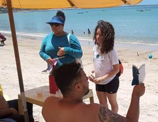 Ação de sensibilização ambiental realizada na Praia do Quartel, município de Olinda, PE.