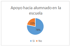 Gráfica 2. Muestra el apoyo que la escuela como institución está dispuesta a brindar en caso de requerirla, como observamos el 78% indicó que reciben una ayuda oportuna y de calidad al tener cualquier problemática escolar, sin embargo el 22% indica que este aspecto es deficiente, mostrándonos así la primer área de oportunidad, que es analizar que ocurre en este aspecto y porque no se les puede brindar la ayuda requerida.