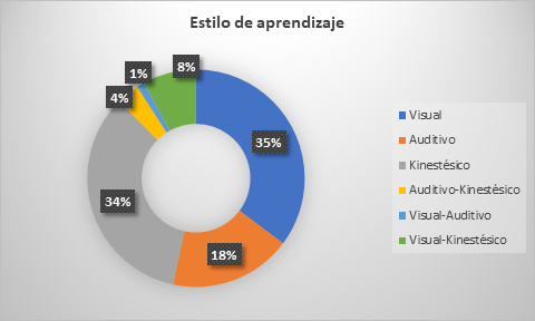 En el 35% de la comunidad encuestada predominó el estilo de aprendizaje visual, mientras que en el 34% lo fue el kinestésico, seguido por el 8% auditivo.