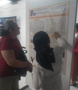 Nota: Amelia presentando su cartel a la audiencia en la clausura del programa.