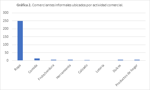 Como se puede notar en el anterior cuadro, en la ciudad se ha venido incrementando la instalación de comercio informal en diversos sectores populares de la ciudad, ello ocasiona diversos problemas entre los cuales podemos mencionar: congestión de la vialidad, la generación de residuos sólidos urbanos, la movilidad social, la alteración de la vida cotidiana en las colonias y la carencia de opciones de empleo remunerado.