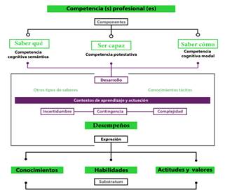 Figura 1: Componentes y expresiones de las competencias(s) profesional(es).
