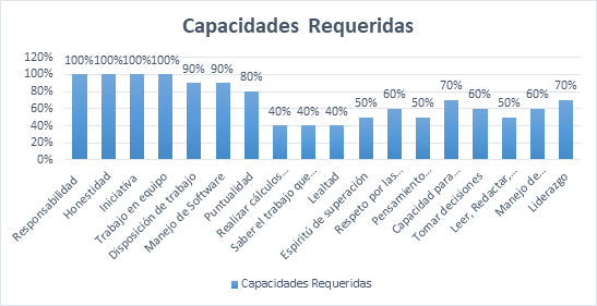• Ya las capacidades menos solicitadas fueron: Realizar cálculos aritméticos y Saber el trabajo que se le asigna, con un 40%